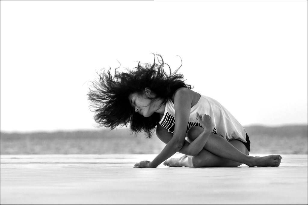 The choreographer continues her search by refining the internal variation of sensations transmitted the rhythm of the music and sounds. It reveals the hidden tiny movements that occur naturally in our bodies, waiting for a rhythm that they can rebound. As they expand emit high energy literally exploding outside the body: the dance of “Waves”.