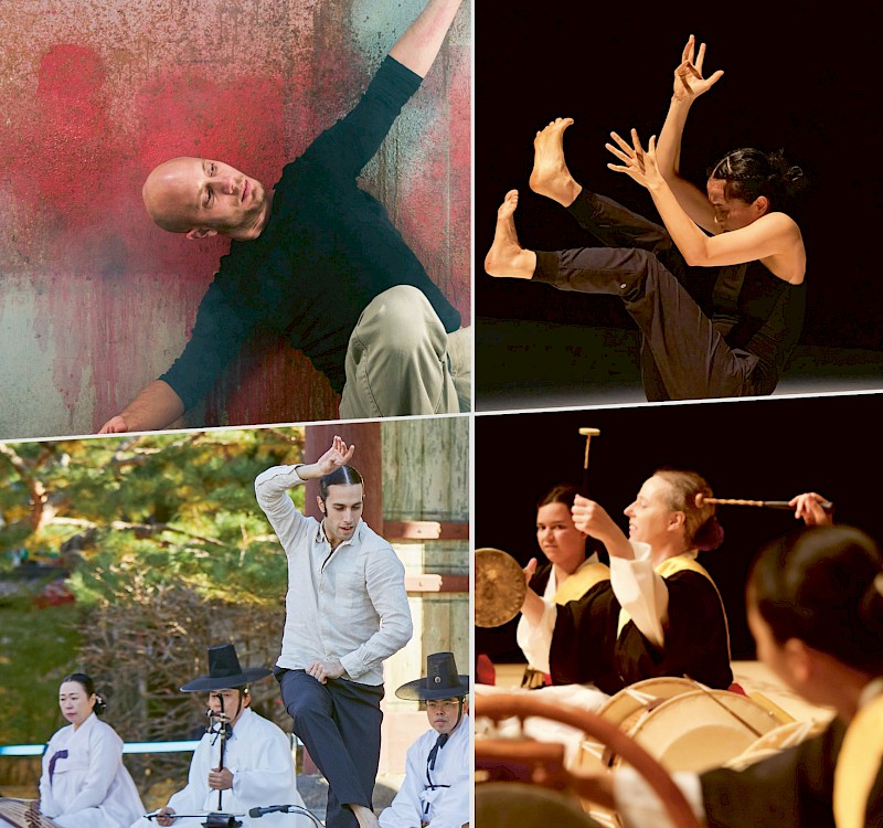 Création 2025 : Les Mondes Transversaux • Danse : Pierre-Yves Diacon, Sun-A Lee, Alessandro Navarro Barbeito • Musique live : Hendrikje Lange, Novandy Lim, Suzanne Nketia Huber, Cécile Unternährer (Ensemble HANUL BARAM / percussions traditionnelles coréennes) • Création sonore : Pierre-Yves Diacon • Dramaturgie : Françoise Boillat • Regard extérieur & training : YoungSoon Cho Jaquet • Création lumière et technique : Louis Schneider • Traductions : Un He Paik • Communication graphique : Equipo AG • Communication digitale : Charles Ian Chun • Direction de projet : Philippe Olza • Production : Les Mondes Transversaux • Coproduction ADN — Danse Neuchâtel • Coréalisation : Centre Dürrenmatt Neuchâtel (CDN) & Association Danse Neuchâtel (ADN) • Soutiens : Fondation Charlotte Kerr Dürrenmatt ; Canton de Neuchâtel ; Ville de Neuchâtel ; Loterie romande ; Fondation Ernst Göhner ; Fonds de donations La Mobilière ; Fondation culturelle de la BCN ; Fondation suisse des artistes et interprètes (SIS), Printemps culturel neuchâtelois (PCN) • Un grand merci également à l’Ambassade de la République de Corée et à l’Ambassade d’Espagne en Suisse, ainsi qu’à l’Ambassade de Suisse à Séoul.